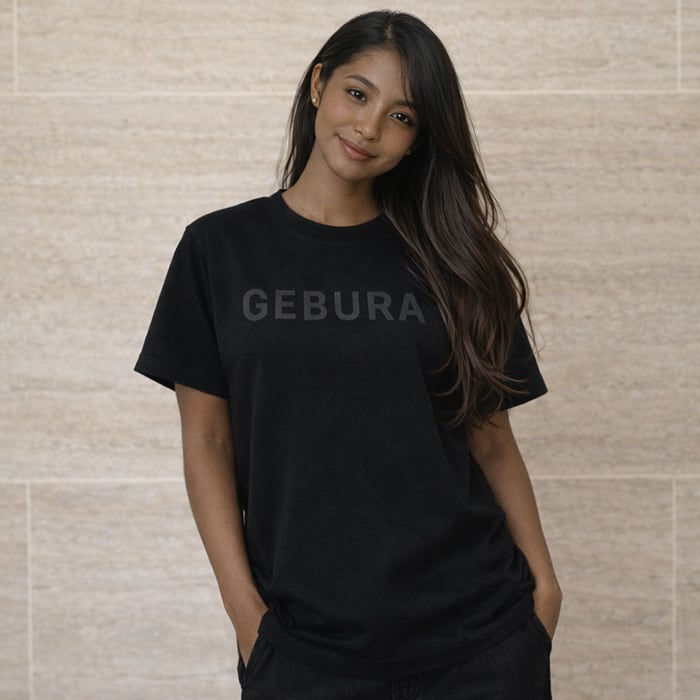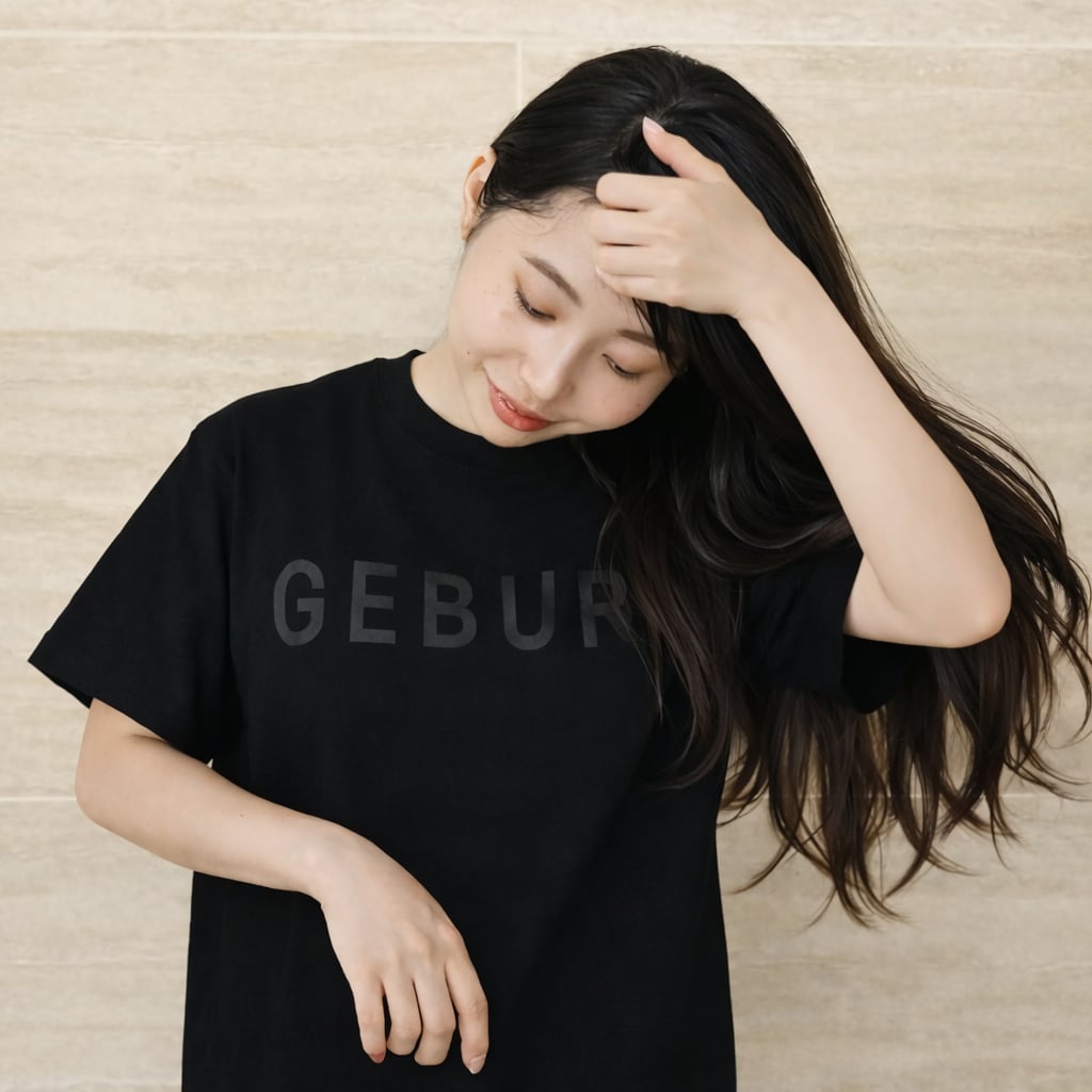 GEBURAオリジナルTシャツ。しっかりとしたボディにシルクスクリーン印刷。黒ボディに黒印刷。サイズ表は最終画像に。